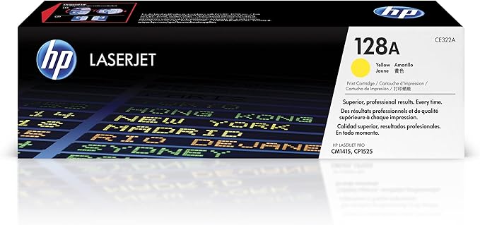 - What's in the box: 1 new Original HP 128A Yellow Toner Cartridge (CE322A)