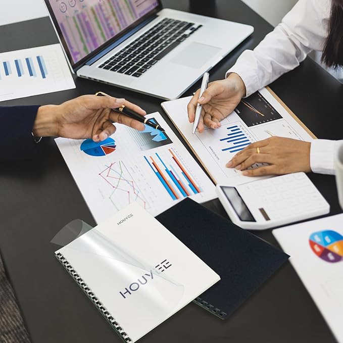 HOUYEE Binding Covers and Combs Set, 8.5x11 Inches, Including 50 Pcs Leather Texture Paper Binding Covers, 50 Pcs 8 Mil Clear PVC Sheets and 20 Pcs Assorted Combs