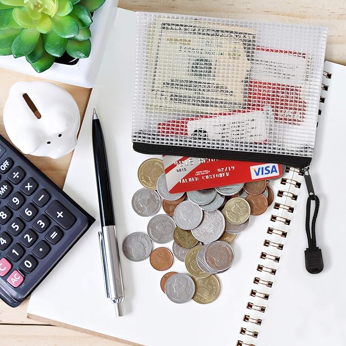 12 Pcs Plastic Mesh Zip File Bags, Waterproof Tear-Resistant Document File Folders, B8 Size Zipper Documents Pouch Document Organizer Bags for School Office Home Travel Storage(5×4.1 Inch)