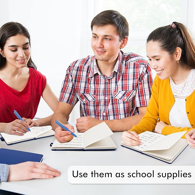 - Feela 12 Pack Classic Ruled Notebooks contains 12 classic navy ruled sturdy cover notebooks and 12 Black Retractable Pens. Each of the notebooks measures 8.3” x 5.1”, which is perfect to carry and easily held by young girls and boys. These black cute pens are customized to be placed in the pen holder, which is pretty convenient.