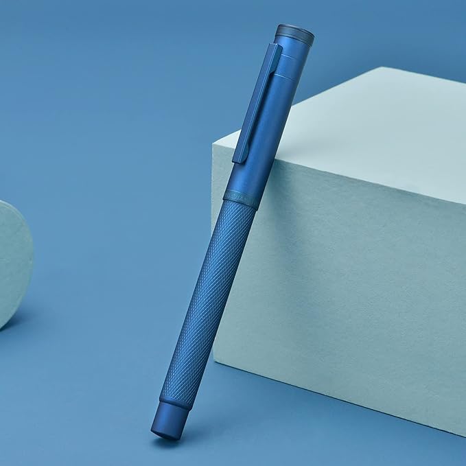 - Beautifully well balanced and artfully writing instrument, this matte blue rollerball pen set is top of its class.