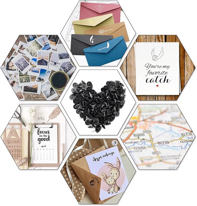 - 1. Premium Flat Push Pins: these black thumbtacks are composed of plastic head and steel point, sharp and durable, which are not easy to bent or broken short, created to stand years of use.