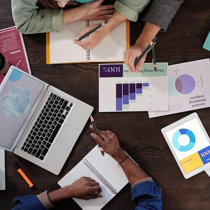 12 PCS 2 in 1 Stylus Ballpoint Pen with Stylus Tip, 1.0 mm Black Ink Metal Pen Stylus Pen for Touch Screens (Rose Gold & Purple)