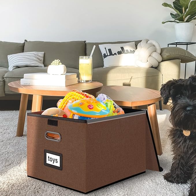 Huolewa Upgrade Portable File Organizer Box with Lid,Large Linen Hanging Office Document Storage Box with Lid,Collapsible Filing&Storage Box for Office/Decor/Home-14.9x12.7x10.8in,1pk-without folders
