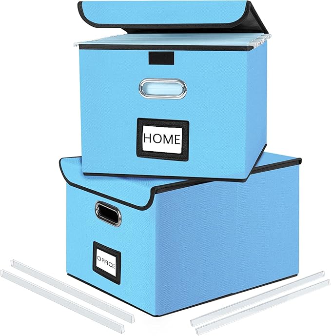 - Unique Functional Design - This file boxes both sides are equipped with practical PVP slide rails, which can not only prevent the two sides of the file storage box from loosening, but also facilitate the sliding of the file folder, which is very suitable for hanging file folders. The metal handles on both sides allow us to easily move the storage box, and the label slot on one side facilitates classification. Functional features and a beautiful design create the best filing organizer.