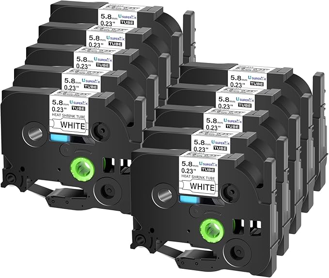 - USUPERINK Alternative Replacement Compatible for Ptouch HSe-211 HS-211 HSe211 HS211 AHS-211 Preminum Heat-shrink Tube Label Maker Tape