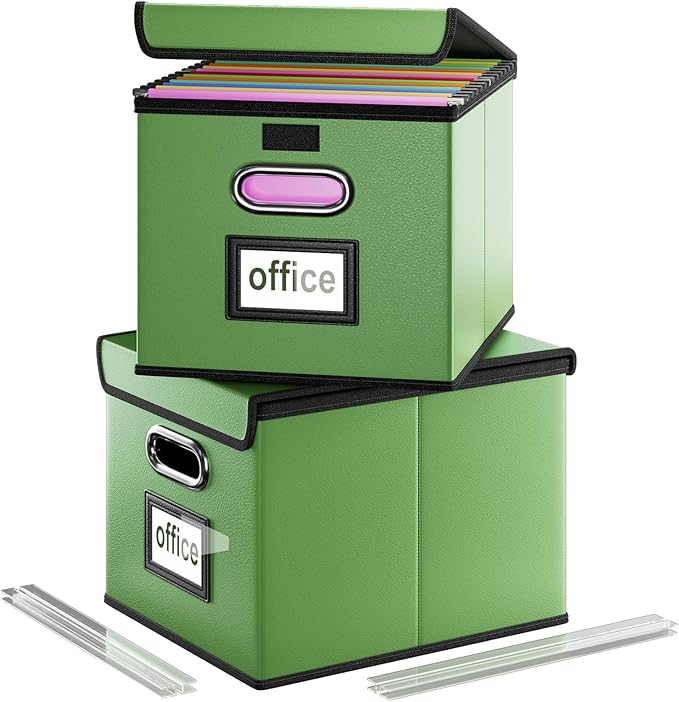 - Unique Functional Design - This file organizer both sides are equipped with practical PVP slide rails, which can not only prevent the two sides of the storage box from loosening, but also facilitate the sliding of the file folder, which is very suitable for hanging file folders. The metal handles on both sides allow us to easily move the storage boxes, and the label slot on one side facilitates classification. Functional features and a beautiful design create the best filing box organizer.