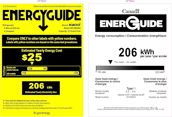 - Refrigerator Cooling Range: 32 – 50 degrees F