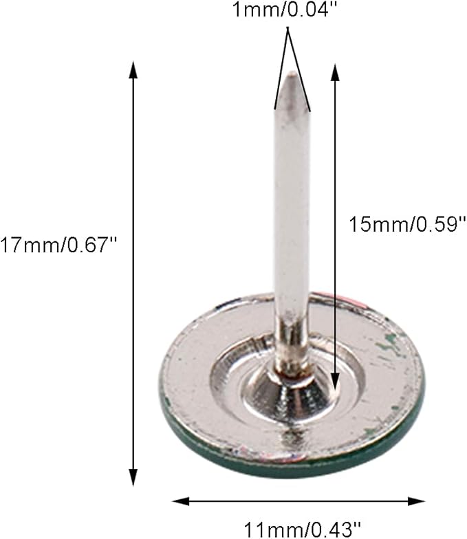 - PACKAGE CONTENT: 100Pcs green flat head upholstery tacks, enough quantity to meet your daily needs. Total Size:11mm*17mm/ 0.43" * 0.67"(Dia.xH), elegant for furniture decoration
