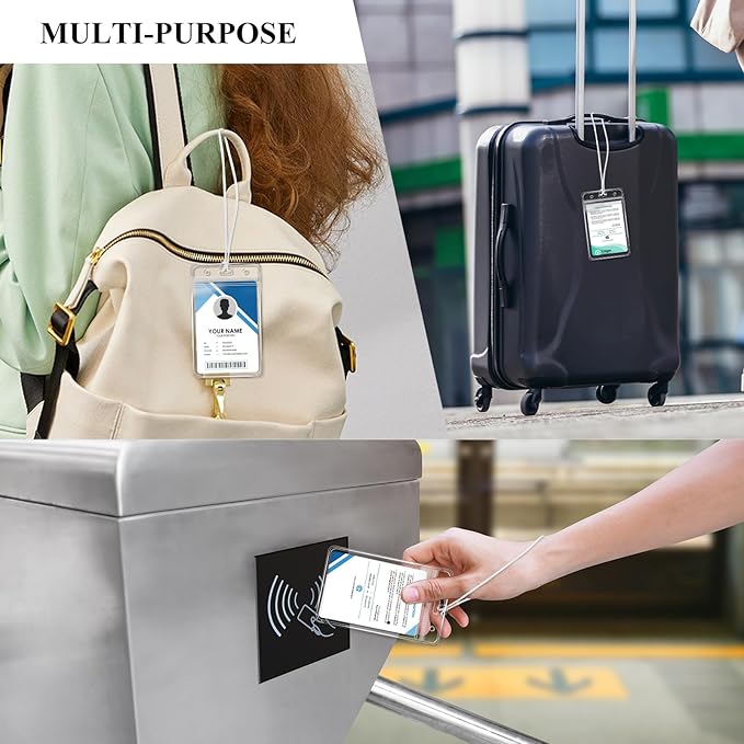 - Widely Used: Badge label tag holder is suitable for luggage tag, bag tag, ID card, credit card, work ID card, visitor pass, access card, suitable for a variety of occasions, travel, offices, schools, exhibitions, music festivals, cruise, factories, conferences, etc.