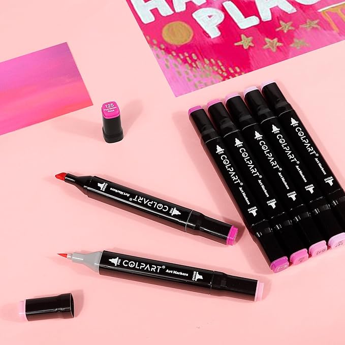 - 【Dual Tips Alcohol Markers】Dual Tips Art Markers Design allows you to make thick and thin lines without changing markers.Includes Fine tip 1mm and Broad tip 6mm twin tips for precise highlighting, sketching and underlining. Thin markers can be used to write and hook line while thick art markers professional are suitable for drawing and coloring.