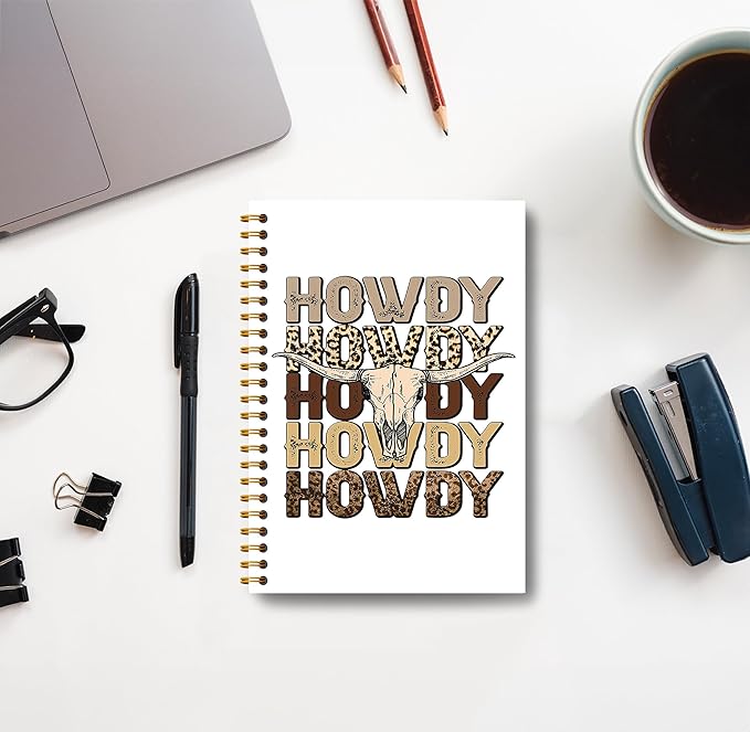 Howdy Western Notebook Journal 164 Pages - Western Gifts for Women Cowboy Cowgirl, Western Cool Notebook, College School Supplies, 5.5×8.3 Notebook Spiral Bound
