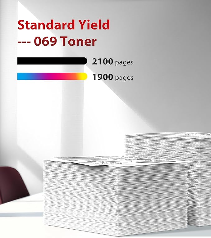- 3. High Page Yield: Up to 2,100 pages per Black toner for Canon 069. Up to 1,900 pages per Color toner for Canon 069 based on 5% coverage, Letter/A4