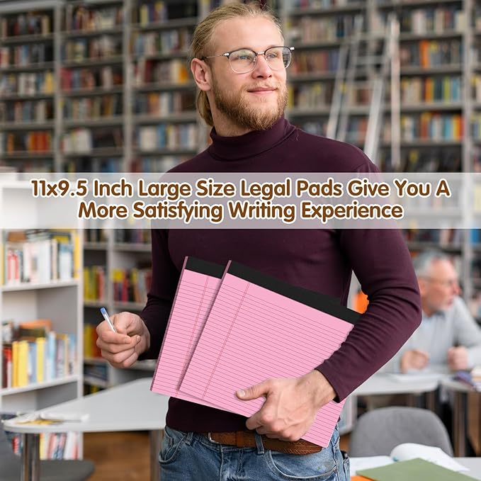 - 【Large Size】Our legal pads measure approximately 11 x 9.5 inches (27.94 x 24.13 cm), providing plenty of writing space for all your needs. The legal pads have a sturdy backing that provides good support while you write