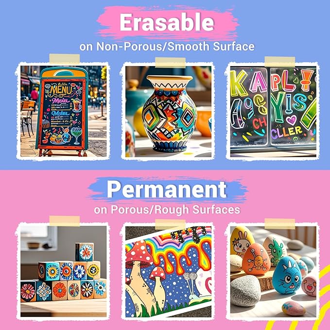 - EASY TO WIPE OFF: These liquid chalk markers erasable can be used on smooth surfaces such as glass, ceramics, chalkboards, etc. Ink on these surfaces can be easily wiped with a damp cloth, making cleaning quick and easy.
