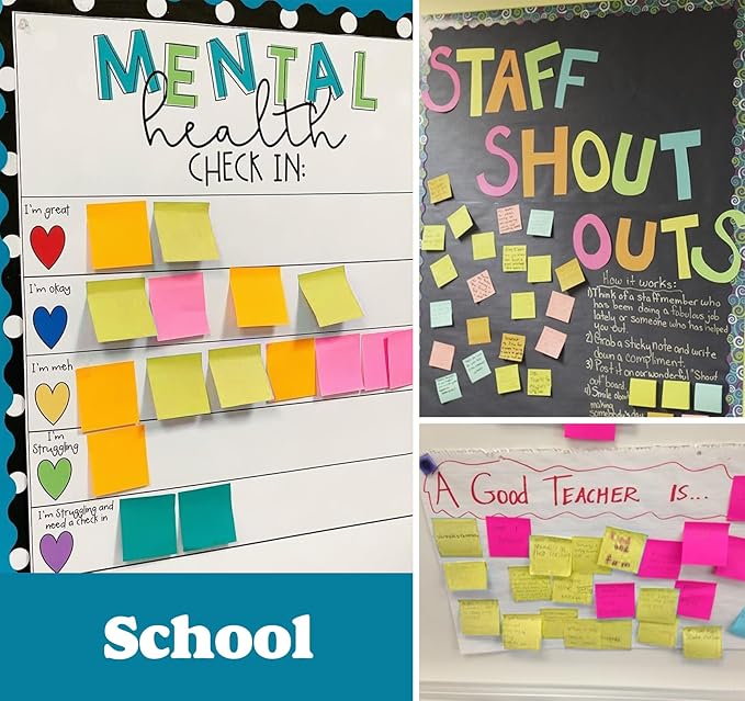 - 【Stick Securely】Removable adhesive for easy sticking, removing, and repositioning without tearing the paper.These self-stick notes offer the perfect balance of practicality and versatility.