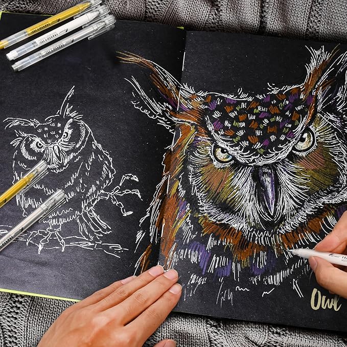 - Multi-Purpose - Writes on dark paper such as black paper, craft paper. White fine point gel pens for detail drawing sketching coloring, illustration, card making, scrapbook and other projects.