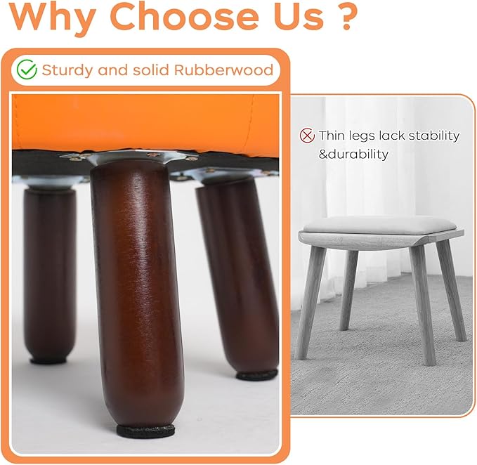 - 【Anti-Slip Design】- These leather foot stools small ottoman rubber legs come with dedicated felt pads to prevent scratches on floor and keep it from sliding.Wood leg with non-slip felt pad is quiet when moving, and can avoid leaving scratches on floor.The small footstool is perfect for small spaces and is compact enough not to get in anyone's way.