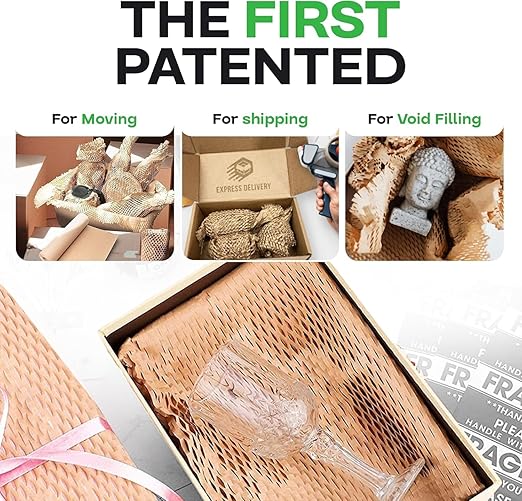 - 【THE ONLY PROVEN SLIT PAPER TECHNOLOGY】 The HexcelWrap produced by the slit paper technology was developed over 30 years ago, and it's been proven to be an effective packing material. Due to the engineered hexagonal cells, this honeycomb wrapping expands as you wrap your items, creating an interlocking web trap. The resulting three-dimensional cushioning product (paper) replaces traditional plastic, bubble, and other paper-based packaging products in terms of properties and efficiency