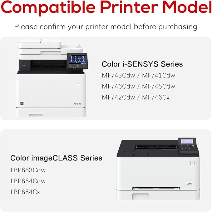 - Compatible Printers: Canon Color imageCLASS MF743Cdw Printer, Color imageCLASS MF741Cdw Printer, Color imageCLASS MF745Cdw MF746Cdw LBP664Cdw, MF741C MF743C MF740 Series Laser Printer ink