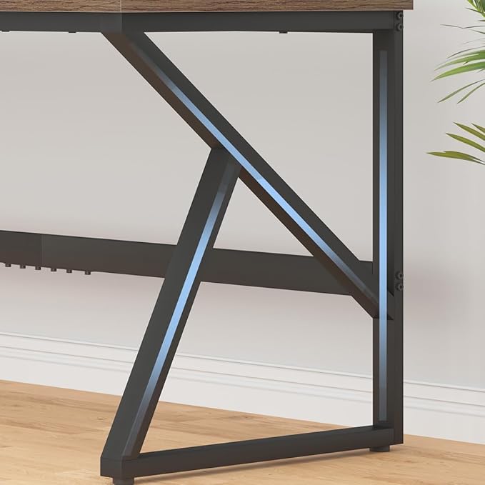 - 【Sturdy Construction】: Constructed with three high quality MDF panels and two thicken K-shaped metal legs, this wood and metal desk ensures the stability during use and can support up to 400lbs of weight. The adjustable 4 levelers can be used in uneven ground to keep the pc laptop table balance and prevent scratches.