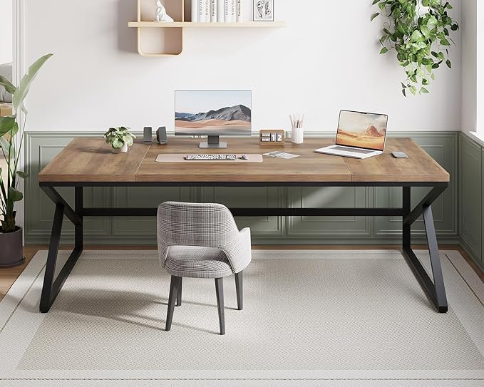 - 【Spacious Work Space & Leg Room】: Measuring 31.5"D x 78.7"W x 30.0"H overall, this extra large home office desk offers ample space to accommodate multiple monitors, pc, laptop, printers, files, books, lamps and any other office essentials, ensuring you have everything you need within arm's reach for enhanced productivity. Featuring two K-shaped metal legs with an open structure, this long computer desk provides ample leg room, promoting comfort during extended periods of use.