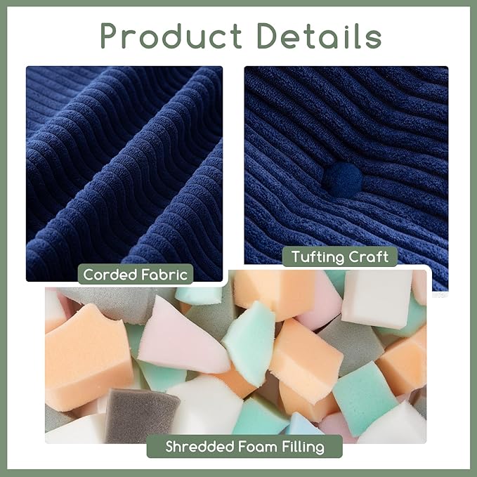 HIGOGOGO Square Stuffed Pouf Ottoman, Corduroy Poufs with Foam Chunk Filling, Furry and Fluffy Pouf Foot Stool Storage Ottoman, 25.6 X 25.6 Floor Poufs Foot Rest for Living Room, Navy