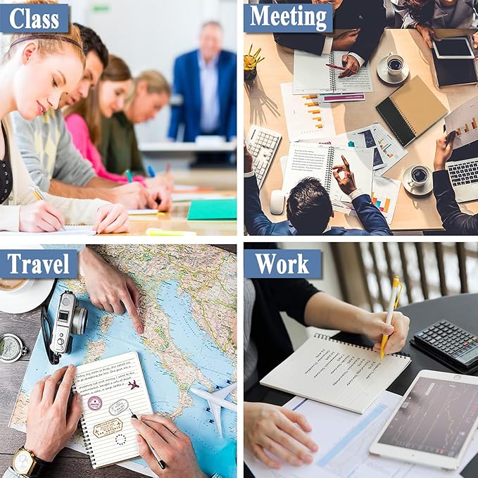 - 【SPIRAL JOURNAL NOTEBOOK】The wide ruled spiral bound notebooks can be opened 360°freely without folding creases, also facilitate you to rip pages, the double-line spiral binding makes the edge firm and prevents the paper from scattering.
