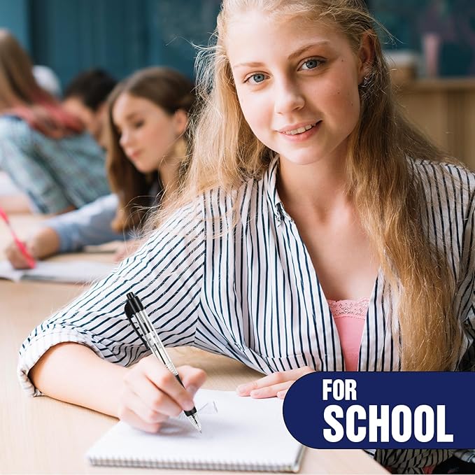 - Retractable Pens with Clip: this soft grip ballpoint pens have a retractable design to avoid the ink from drying out, just press down to use it, never worry about losing the cap; And the retractable pens comes with a clip that allows you to easily secure it in your notebook, binder or pocket for easy portability