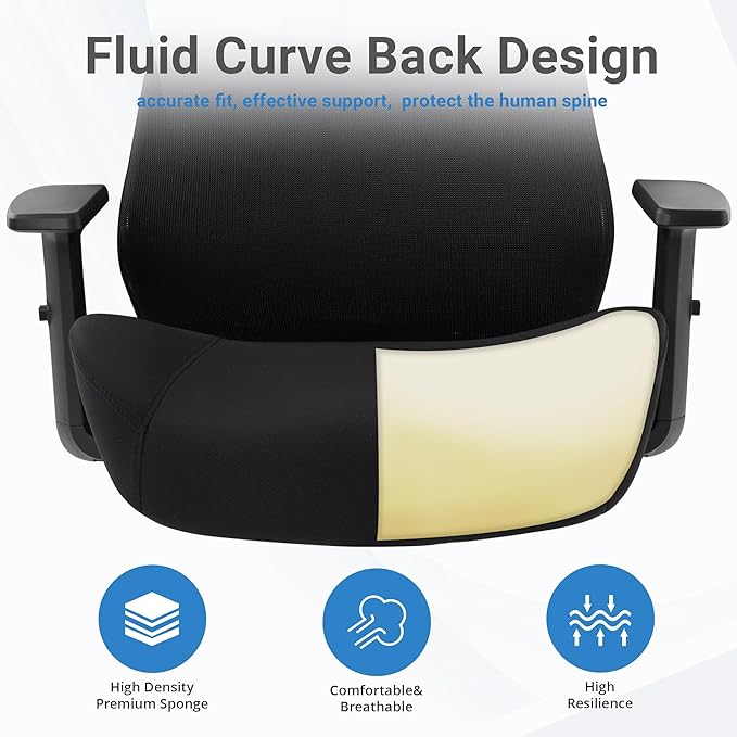 HYLONE Office Chair, 5" Thickened Seat Ergonomic Desk Chair with Adjustable Armrests, Home Office Computer Chairs for Long Hours Mesh Executive Chair(Black)