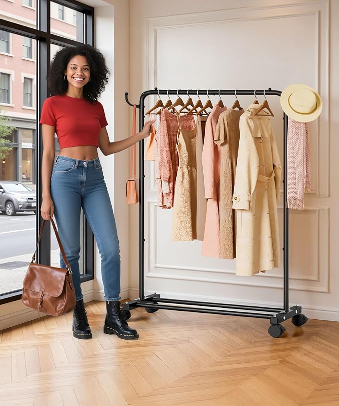 - Multi-Space Clothing Rack for Home/Store: Roll between bedroom (clothing organizer), entryway (coat stand), laundry room (drying rack), and boutique (apparel display). Compact 32"W x 52"H fits apartments, garages, pop-up shops, and guest rooms
