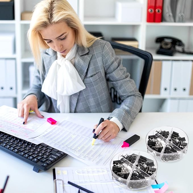 - Packaging Includes: 24 boxes of black Paper Clips and Binder Clips Set, very suitable for distribution to office employees, one box for each person, office essential