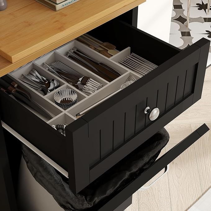 - Hide Mess, Reveal Style: Tired of staring at a bulky trash bin? This hideaway trash can cabinet conceals odors and clutter behind its tilt-out door, keeping your kitchen or laundry room instantly tidy. Fits standard 10-gallon bags (dimensions: 20"L x 13.1"W x 36"H), yet looks sleek enough to complement farmhouse or modern decor